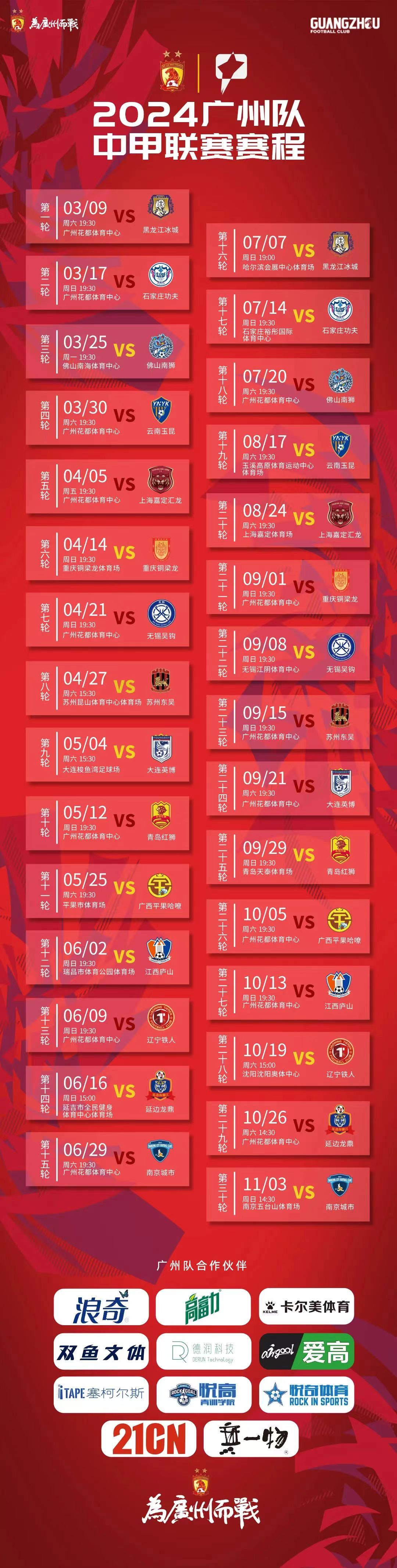 广东的队比赛表Guangdong Team Match Schedules